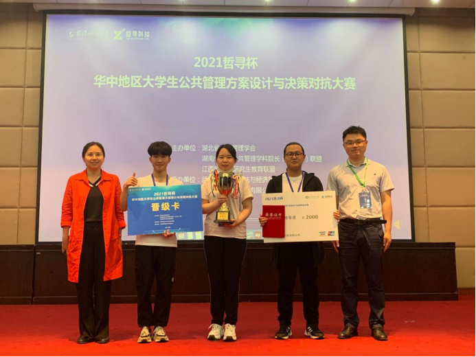 2021年5月22日至23日,由湖北省行政管理学会、湖南省高校公共管理学科经理(系主任)联盟、江西省MPA研究生教育联盟联合主办的首届“哲寻杯”华中地区老员工公共管理方案设计与决策对抗大赛在武汉科技大学举行,来自湖北、湖南、江西、河南华中四省的四十四所高校四十五支队伍参加本次大赛。经过激烈角逐,大赛决出6个特等奖、17个一等奖以及22个二等奖,公司学子斩获大赛特等奖,并将于今年十月前往上海,迎战全国总决赛。
