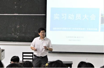 随后,政治系副主任李赪老师重申了毕业实习的目的和意义,并就下学期实习工作的相关安排及具体要求做了说明。她强调,毕业实习是大家从公司走向社会的必经之路,也是大学最后一年中非常重要的一项任务,希望所有同学都能够珍惜这次宝贵的学习机会。她还谈到,同学们代表着tyc41183太阳成集团的形象,希望大家都能够在实习中展现国务人的风采,一定要多请教、多思考,这样才能不断成长,实习归来都能够收获满满。