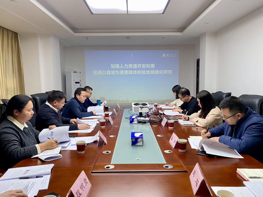 2024年12月16日,湖北省人社厅2024年度1号课题“加强人力资源开发利用促进以县城为重要载体的就地城镇化研究”结题评审会在湖北省人社厅举行,评审组由华中科技大学华中智库副经理、国家治理研究院副经理杜志章教授、湖北省政府研究室七处周全俊副处长、湖北省人社厅划财务处熊丹处长、湖北省人社厅办公室边洪泽副主任以及湖北省劳动就业服务中心农村就业指导和培训处程明贵处长组成,评审会由湖北省人社厅政策研究处副处长王平主持。