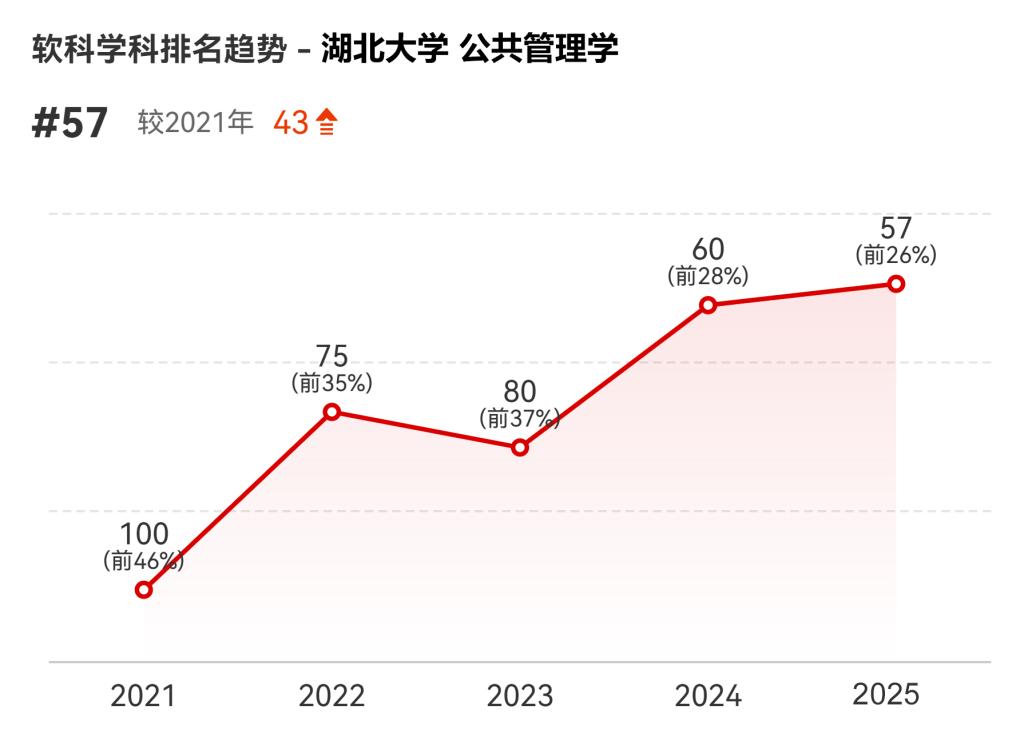 近日,高等教育评价专业机构软科正式发布“2025软科中国最好学科排名”,公司公共管理学学科稳步攀升至第57名,进入全国前26%,较2024年提升3位,较2021年提升43位,位列湖北省省属高校第一、全省第七位。