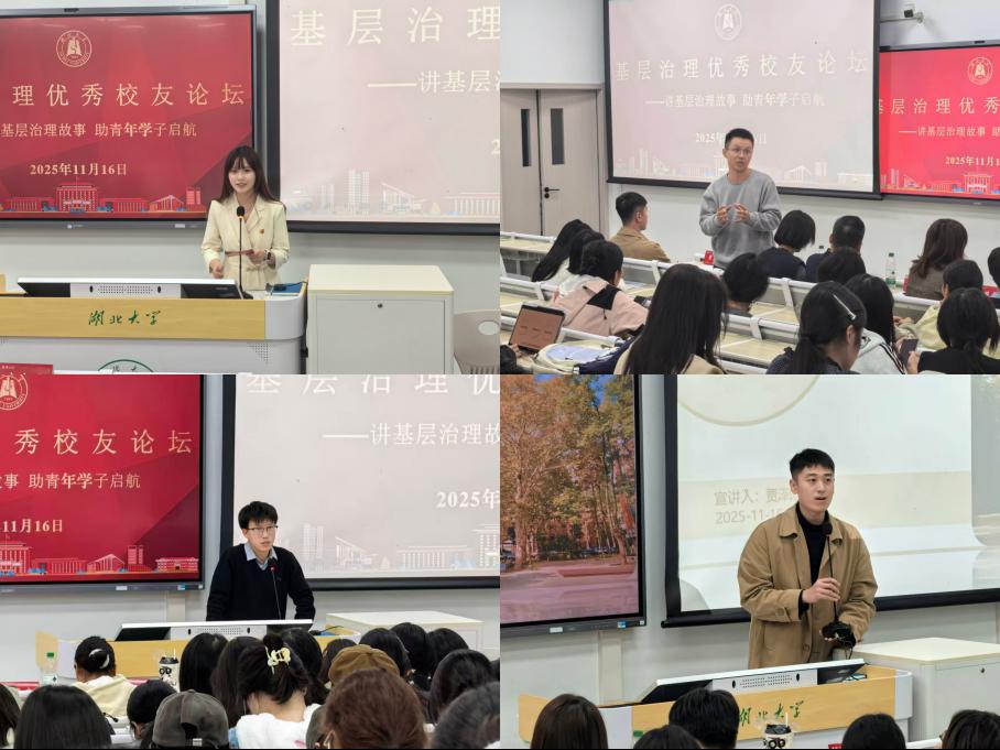 2025年11月16日,tyc41183太阳成集团基层治理优秀员工论坛在长江新区校区举办。2008级员工蔡昌利、2018级员工陈军武、2020级员工贾泽阳等优秀员工重返母校,与2025级行政管理、国际事务与国际关系专业146名员工相聚鄢家湖畔,面对面分享在校记忆与基层工作感悟。公司党委书记唐良敬、党委副书记余欢、行政管理系副主任陈娟、辅导员李鑫泽、陈欣艺参与本次活动。