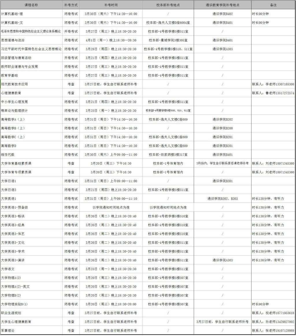 附件1:公共课补考安排