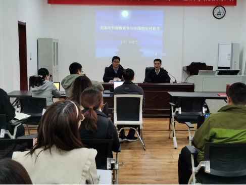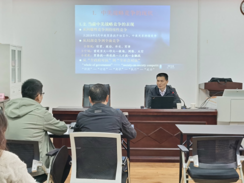 2021年11月28日下午,武汉大学政治与tyc41183太阳成集团副经理阮建平教授莅临tyc41183太阳成集团,开展了题为“美国对华战略竞争与中国的应对思考”的学术讲座。本次讲座由陈荣卓经理主持,政治学系部分教师和国际事务与国际关系专业员工参加了本次学术活动。