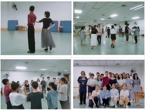 郭晓丽老师与舞伴刘喆老师以一支简短的舞蹈拉开活动序幕。随后,郭老师带领同学们学习热身舞蹈和华尔兹基本舞步。在练习过程中,同学们互相行礼、旋转、击掌、对视、交换舞伴,在音乐中进行无声的交流。最后,同学们围成圆圈,向同伴介绍自己并讲述活动感受。大家纷纷表示,此次良好的华尔兹初体验,释放了心中的压力,也使得自己在与他人沟通上获得了更多的信心。