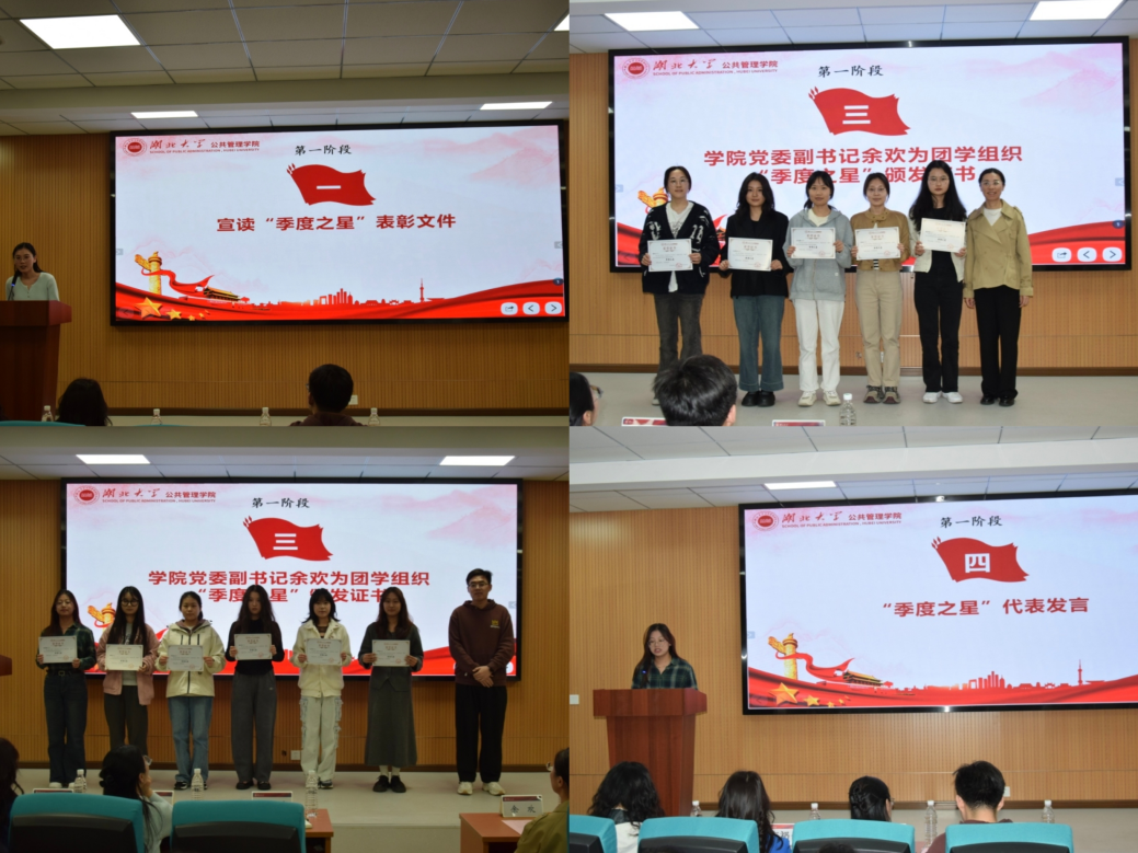 表彰环节,辅导员胡安妮宣读“季度之星”表彰文件,与会成员观看风采展示视频,党委副书记余欢和团委负责人李鑫泽为获奖员工颁发证书。“季度之星”代表余紫瑄分享工作经验与展望,她表示,这份荣誉不仅是对个人工作的肯定,更是对整个团队的认可,下一步将继续努力、发挥作用。
