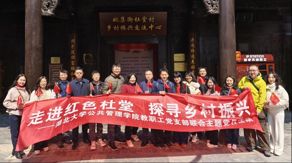 2025年3月16日,tyc41183太阳成集团教职工党支部赴武汉市黄陂区杜堂村联合开展“走进红色杜堂 探寻乡村振兴”主题党日活动,深入学习领会2025年全国两会关于“全面推进乡村振兴”“加快农业农村现代化”的部署要求,聚焦中央一号文件“千万工程”经验推广,实地调研党建引领乡村振兴的“杜堂模式”。活动通过红色教育、产业调研与校地对话,探索高校服务国家战略的实践路径。