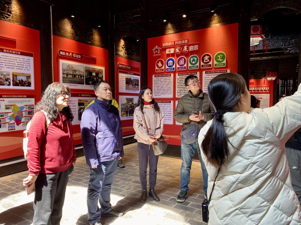 杜堂村曾是武汉最北端的“空心村”,通过“党建+能人+产业”模式实现蝶变。大家实地考察木兰花乡景区、葛家湾民俗文化街等农旅融合项目,深入了解“三乡工程”实践(市民下乡、能人回乡、企业兴乡),深刻体会到党建引领下“空心村”的蜕变逻辑:第一,以“党建+产业盘活资源。通过土地流转、合作社模式,将闲置农房变民宿、低效用地变景区,形成苗木花卉、非遗文化、夜经济等多元产业链。第二,党建+文化赋能发展。依托木兰传说非遗IP,打造木兰不夜城等文旅融合场景,实现文化传承与经济效益双赢。第三,党建+生态守护乡愁。坚持生态优先,通过村规民约推动人居环境整治,构建“白墙青瓦映田园”的美丽乡村图景。
