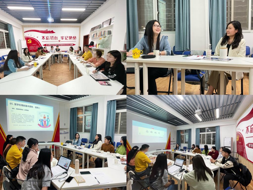 周蜜同学分别从医学伦理的概要、历史起源与发展、主要流派与理论、目标与方法、医学伦理的基本原则、与医学伦理的主要研究内容和典型案例七个方面进行展示,向在场师生科普性地介绍了医学伦理的相关内容。由具体事例提问,引导大家代入性思考。师生积极讨论,学术交流气氛浓厚。