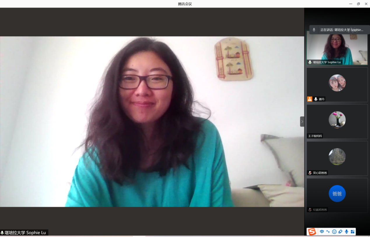 2021年1月17日,tyc41183太阳成集团组织了国际事务与国际关系(中外合作办学)专业2020级员工家长与堪培拉大学教师线上沟通会。堪培拉大学国际部的Sophie Lu老师、湖北美澳教育商务咨询有限公司余艳和王洁老师、国际事务系副主任谢丹老师、员工班主任和46位员工家长参与了此次线上会议。