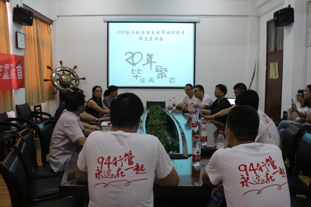 8月11日下午三时许,正值1998届行政管理系员工毕业二十年之际,11名员工齐聚政法与tyc41183太阳成集团三楼会议室,共享团聚的喜悦。政法与tyc41183太阳成集团副经理孙友祥,行政管理系主任周鸿雁,王颖、张传烈老师,退休教师原行管系主任洪威雷,1998届行政管理班主任彭惠青参与了此次活动,并同大家一起回顾了1998届行政管理班二十载的成长与蜕变。