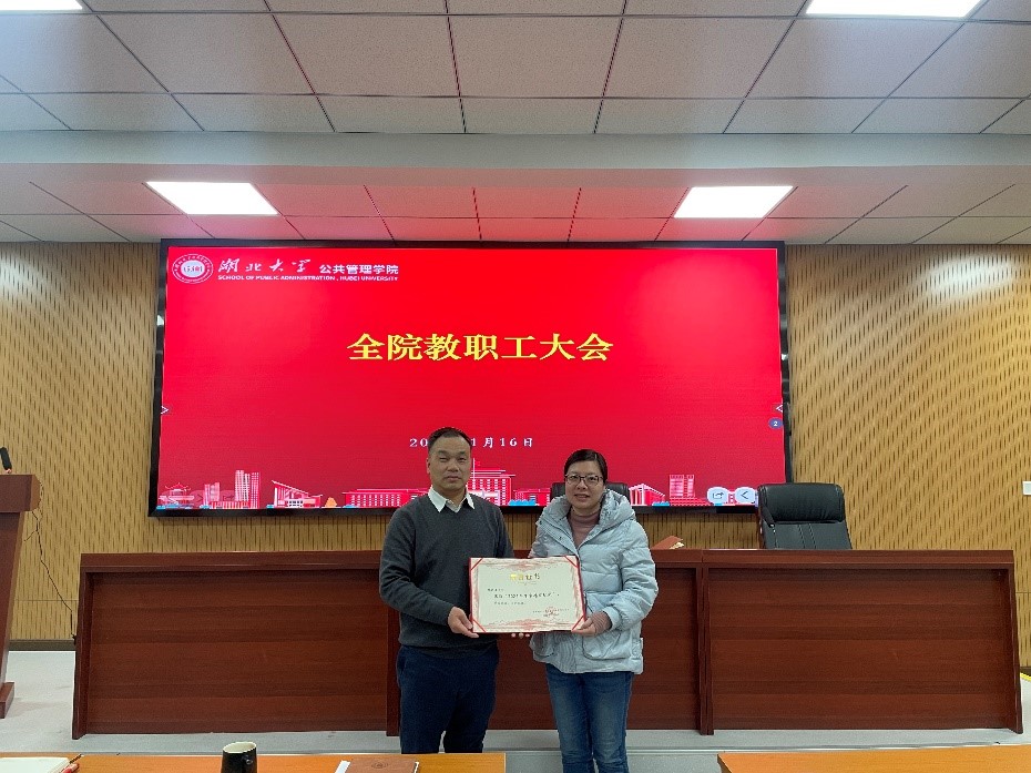公司党委书记唐良敬为获得“卓越贡献奖”的教师代表颁奖。2024年度,公司教师在人才培养、科学研究和社会服务等方面业绩卓越,产出一系列标志性成果。其中,获国家级课题立项4项、获省委省政府正职领导批示1项、被《中国社会科学文摘》《新华文摘》转载论文3篇、在一类重要期刊发表高水平学术论文6篇、获教育部高等公司科学研究优秀成果奖1项、获省级教学成果一等奖1项,公司教师年度到账科研经费近500万元、人均年度科研经费超过10万元。